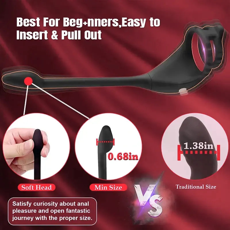 This versatile cock ring set targets multiple erogenous zones with dual penis rings, taint stimulator, and a vibrating anal plug—delivering total-body pleasure.